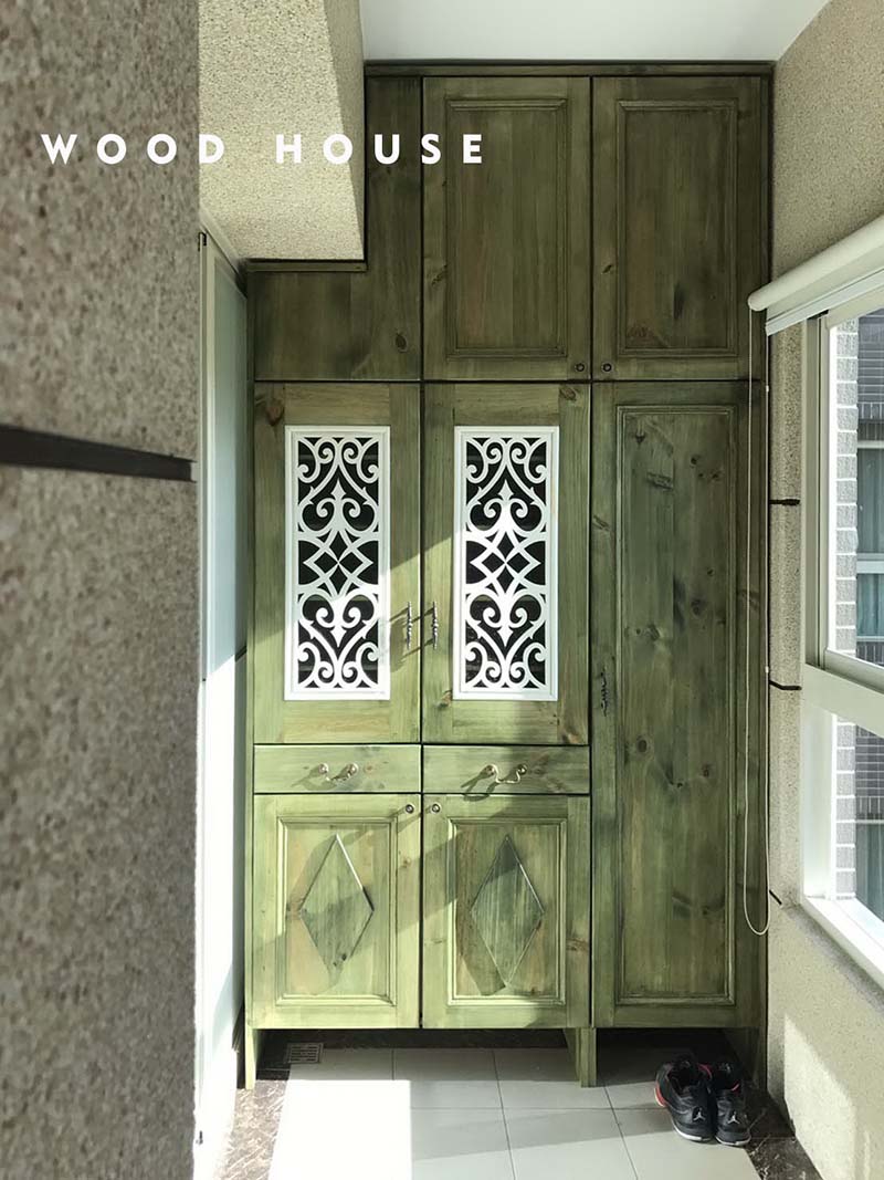 清淡的蘋果綠色系增添櫃體的活潑度並化解高櫃的厚重感